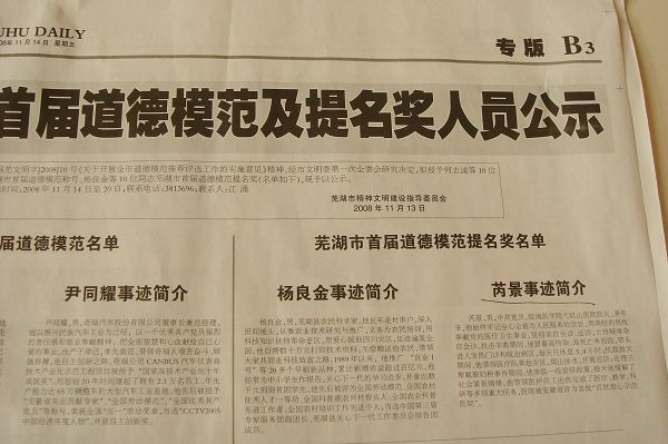 《芜湖日报》于2008年11月14日报道了我校消防活动并对芮景和赵金霞等芜湖市首届道德模范及提名奖人员进行公示。在该报B2版即社会生活版,陈洪、孟鸣两位记者以《消防教官走进高校普及消防知识》为标题,报道了“119”消防宣传活动周期间,弋江区消防大队抽调业务骨干,对我校安全管理人员、大学生护校队员及物业公司负责人进行消防安全培训并现场灭火演练一事。该报B3版以专版的方式对芜湖市首届道德模范及提名奖人员进行公示,我校弋矶山医院院长芮景和护士赵金霞的事迹简介在其中刊登。(宣传部 任苔蓉 文/摄)