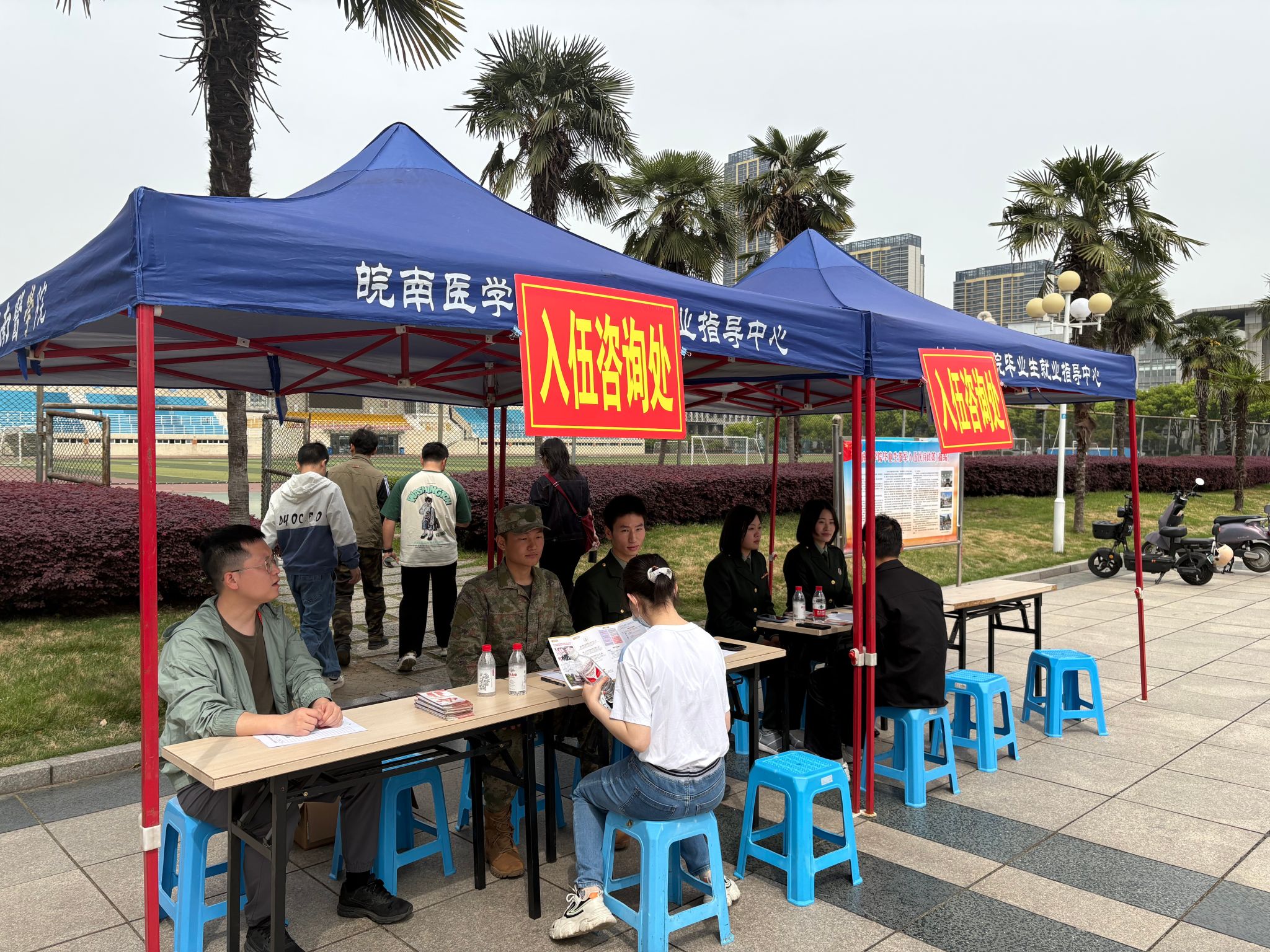 招聘会现场供需双方高效对接,展位前人头攒动,毕业生们手持精心准备的简历,与招聘人员深入交流。招聘单位展板前,学生们或驻足细读招聘信息,或三五成群讨论心仪岗位;招聘人员面带微笑,耐心解答疑问,详细讲解岗位需求与发展前景,双方交流互动,秩序井然。现场还邀请了安徽省卫生健康委员会和省内部分规培基地工作人员开展住院医师规范化培训招生咨询,同步举办了“筑梦青春 职通未来”生涯嘉年华活动。招聘会期间,中国人民解放军海军第九〇五医院等单位召开了校园专场宣讲会,岳西县中医院等多家用人单位采用专场笔试考核、结构化面试、协议签署的一站式招聘流程,通过效率提升、精准评估、成本节约和体验优化,实现了“快、准、省、优”的人才供需精准匹配。