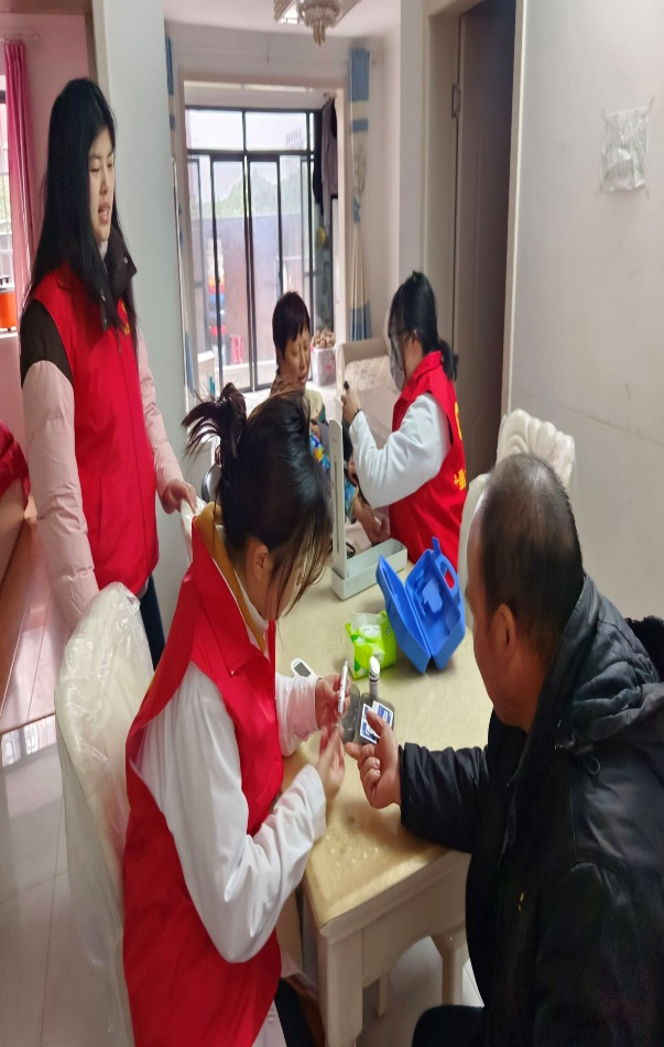 为进一步增强社区居民健康素养和自我防护意识,提升社区老年群体健康管理能力,满足老年人基础健康监测需求,3月4日至30日,"晨光"志愿服务队分别赴红梅社区与十里社区开展义诊活动。针对社区老人普遍存在慢性病管理知识缺乏、健康监测不及时等问题,志愿者们携带专业设备为老人提供血压、血糖、体脂等多项基础健康检测服务,并现场解读检测数据。通过一对一健康咨询,志愿者们用通俗易懂的语言向老人讲解高血压、糖尿病等常见慢性病的日常护理要点,发放图文并茂的健康知识手册,帮助老人掌握实用的自我健康管理技能,获得社区居民的一致好评。