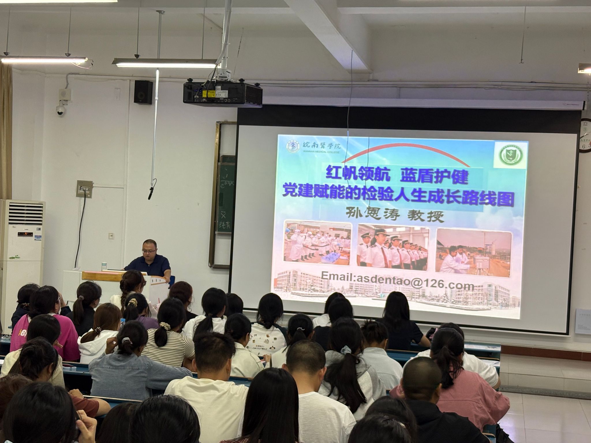 9月24日晚,检验学院在滨江校区(南区)西二教学楼2501教室以“红帆领航 蓝盾护健 党建赋能的检验人生成长路线图”为主题开展第五期“检优论坛”,旨在以高质量党建引领高质量发展,帮助学生稳定专业思想,确立专业目标,明确发展方向。讲座由校第二批党建“双带头人”工作室负责人、卫检教师党支部书记孙恩涛教授主讲,2025级辅导员及全体新生参加。