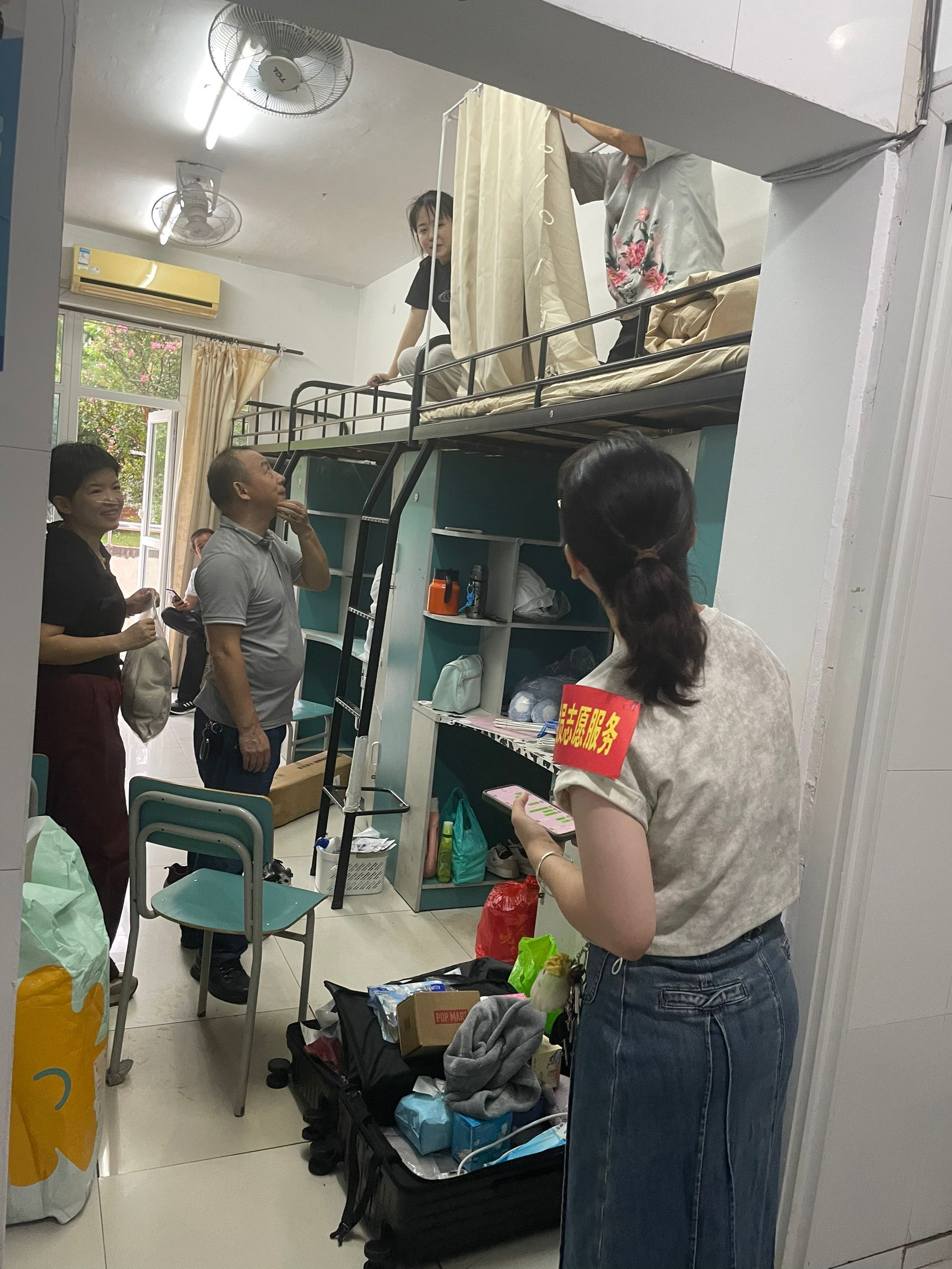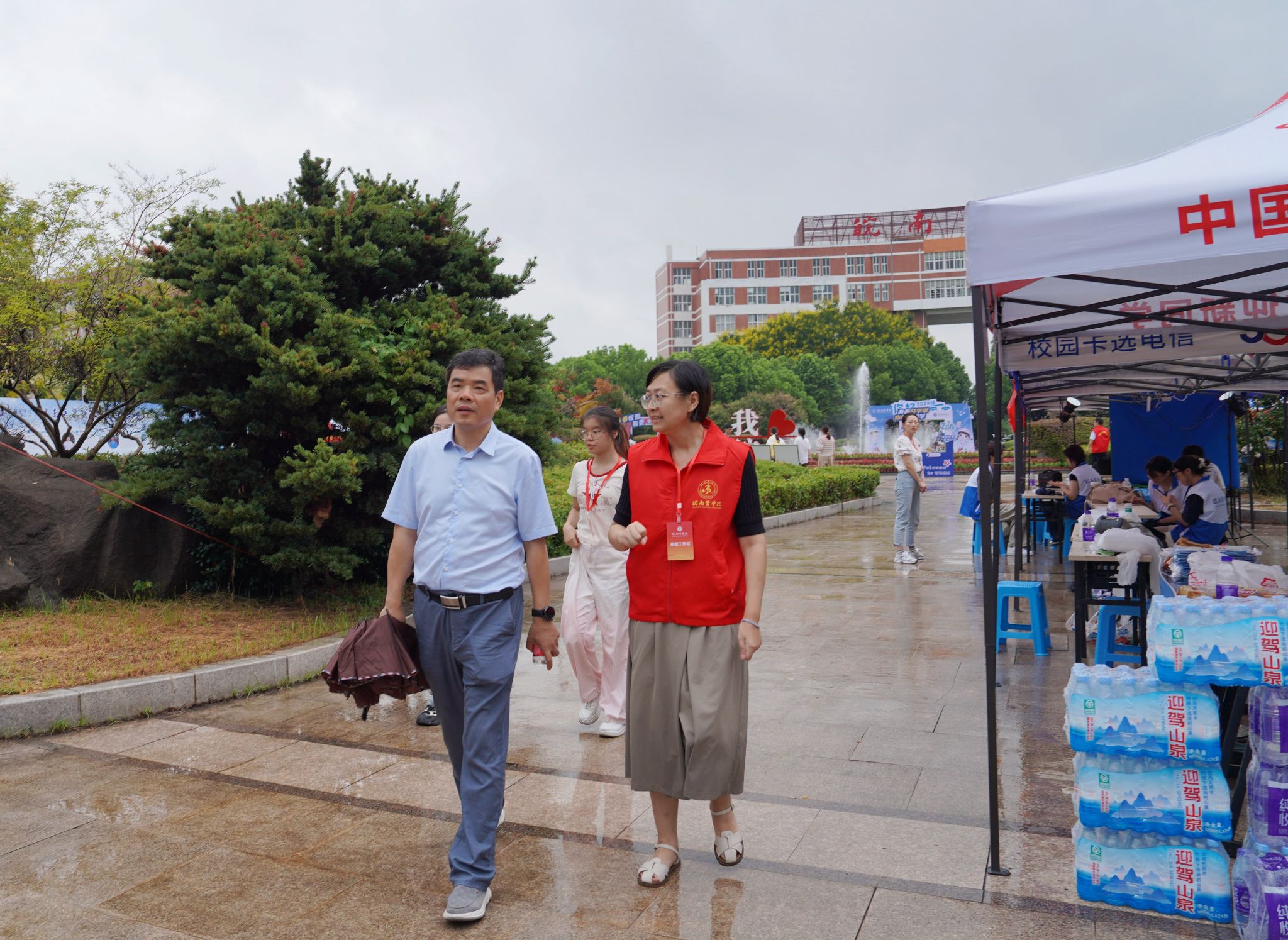 全心全意迎新生,全力以赴办实事。在迎新现场,还有一支由师生党员组成的志愿服务队。他们统一佩戴党徽,亮出党员身份,用心用情用力投身迎新工作中,开展交通疏导、防诈防推销宣传、新生引导咨询、行李搬运等工作任务。尤其迎新首日,由于校门口市政道路维修、校内停车空间有限,为避免自驾车辆拥堵,保证交通通畅,由教师党员组成的党员先锋队早早到达指定位置,配合保卫处耐心引导新生报到自驾车辆有序进校、安全停放、下卸行李、定向驶离。虽然穿着雨衣,但雨水和汗水却早已浸湿了他们的衣背。据统计,迎新期间,全校共设立党员服务站16个,成立党员服务队16个,有近600名师生党员参与迎新工作中,他们以实际行动擦亮了党员底色,让党旗在迎新一线高高飘扬,让党徽在迎新一线闪闪发光。